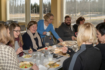 Ensimmäisenä iltana Siirtolapuutarhaliitto järjesti kurssilaisille vapaamuotoisen keskustelutilaisuuden kakkukahveineen. Liitosta keskustelutilaisuuteen osallistuivat puheenjohtaja Pertti Laitila sekä liittosihteeri Tina Wessman. Keskustelun vilkkaudesta jotakin kertoo se, että Tina kirjoitti muistiinpanoja neljän sivun verran. Tilaisuus järjestettiin Lepaan viinitilan kahvilassa, jonne on noin kilometrin matka kampukselta. Samalla oli mahdollista tehdä tuliaisostoksia kahvilan yhteydessä toimivasta myymälästä.