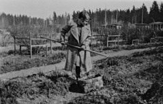 ![]() Kuva: valokuvaaja Väinö Kannisto, Helsingin kaupunginmuseo. Nainen työssä perunapellolla, mahdollisesti Herttoniemessä. Kuva 1940-luvulta. |
